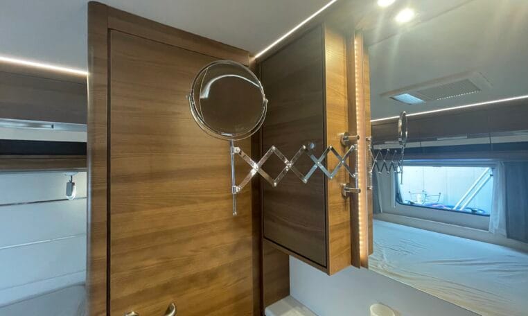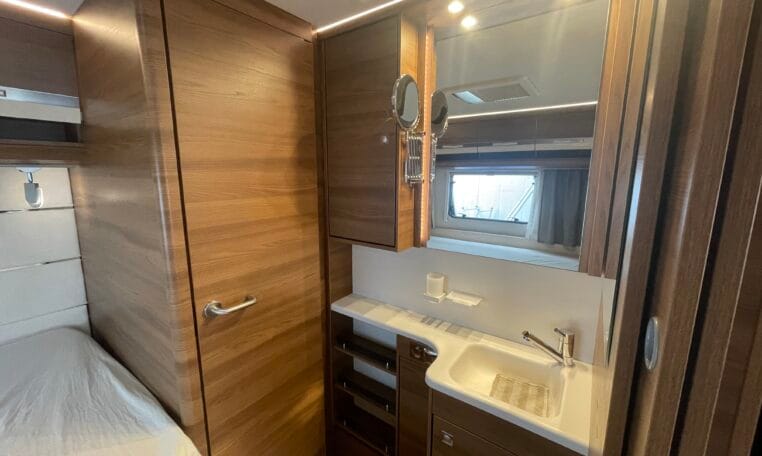 Mover, wintervoortent, grote koelkast met vriesvak, airco, ultraheat verwarming, audiosysteem, lichtmetalen velgen en reservewiel behoren o.a bij de vele opties die deze caravan rijk is.