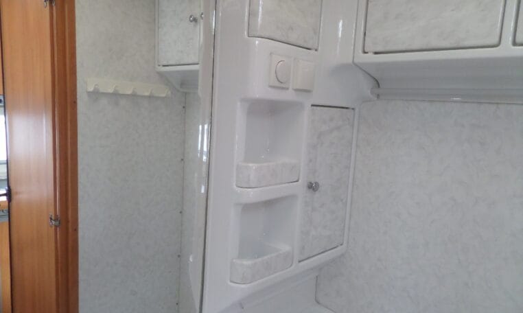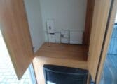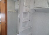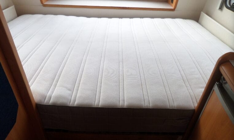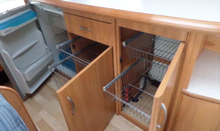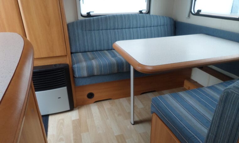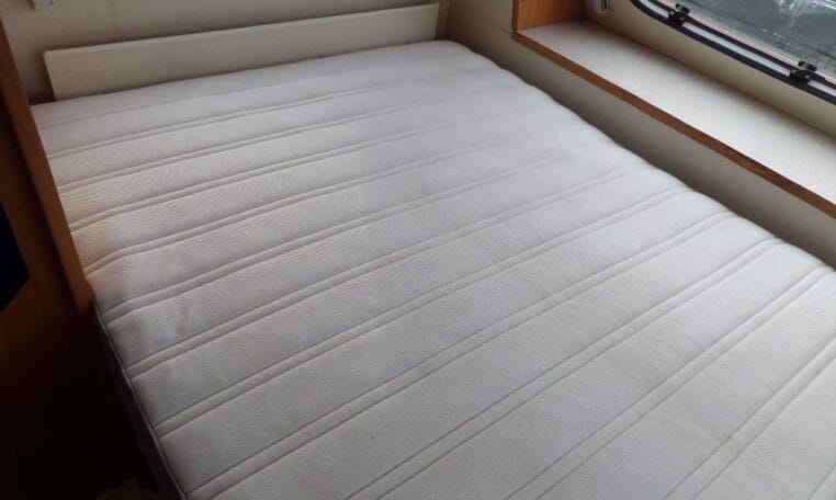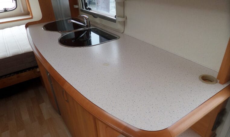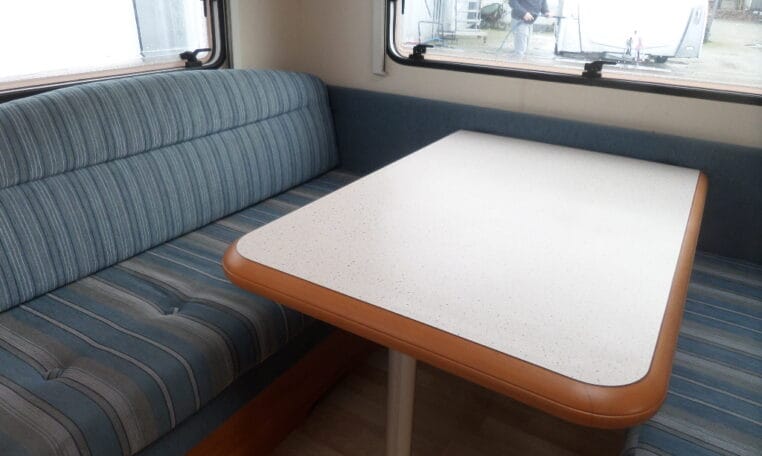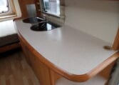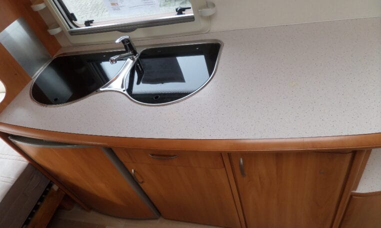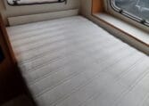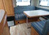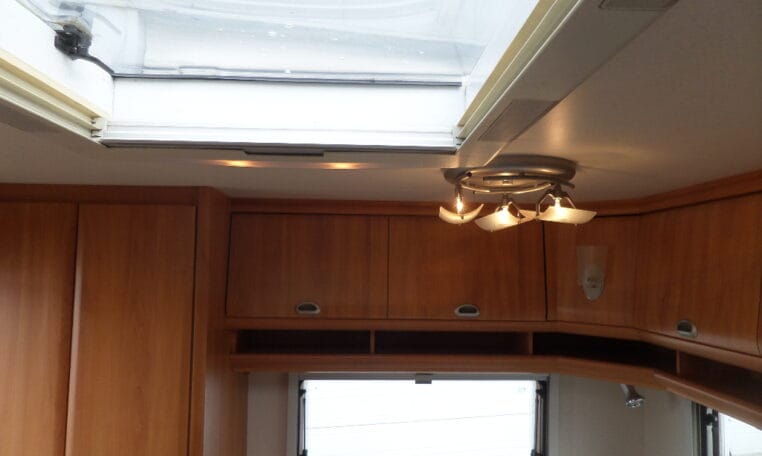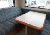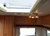 Prima indeling met aan de achterzijde een ruime treinzit, in het midden een royale keuken met veel aflegruimte, er tegenover de was/toiletruimte en voorin een 208 cm lang bed.
