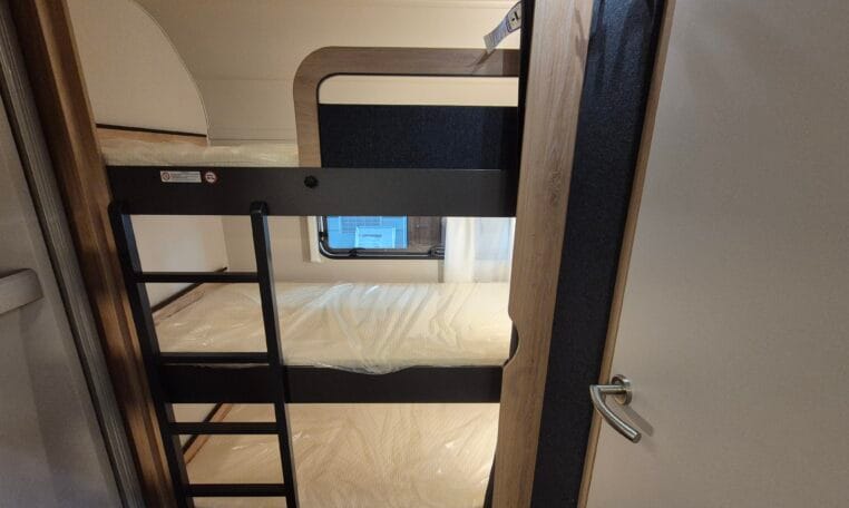 Deze mooie Knaus Sport 500 QDK is vers van de pers en bied 6 slaapplaatsen.Een stapelbed achterin, dwarsbed aan de voorzijde en in het midden een treinzit. Deze is uiteraard om te bouwen naar een bed. Het interieur is voorzien van Ambiëntverlichting incl de achterwand en bekleding keuken in decor van het werkblad. Ruime familiecaravan met 3 stapelbedden en een ouderbed van 146/140 x 207 cm.