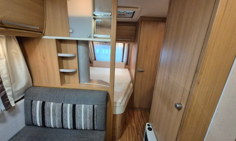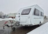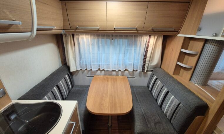 Compacte caravan met leuke indeling. Deze Knaus Sudwind 400 FD is voorzien van een eindkeuken, Treinzit en een fransbed voorin.