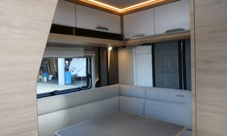 Maak kennis met de Knaus Südwind  500 EU 2026 Black Selection, een premium caravan die design, comfort en innovatieve technologie perfect combineert. Deze uitvoering is uitgevoerd met een gladde grijze buitenplaat.
