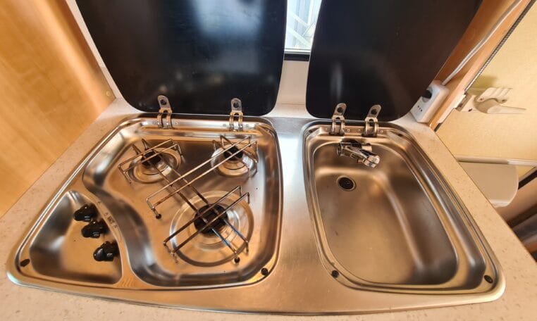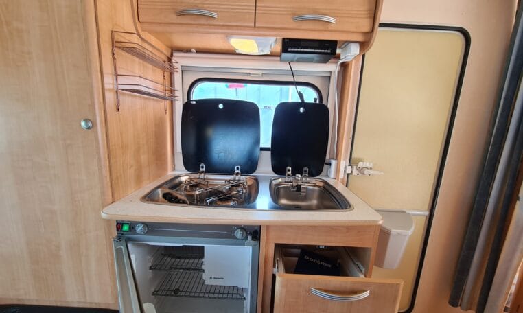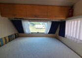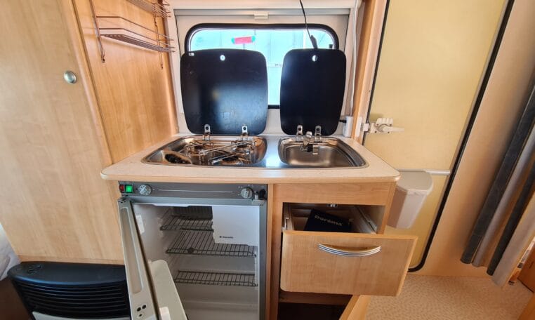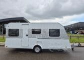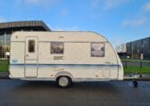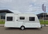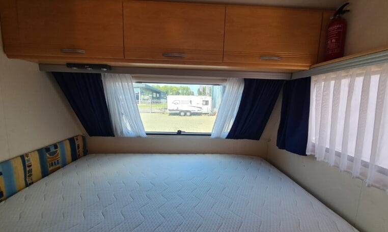 Het leeggewicht van deze caravan is slechts 890 kilo en hij mag beladen worden tot 1300 kilo dus laadvermogen genoeg voor al uw spullen.