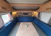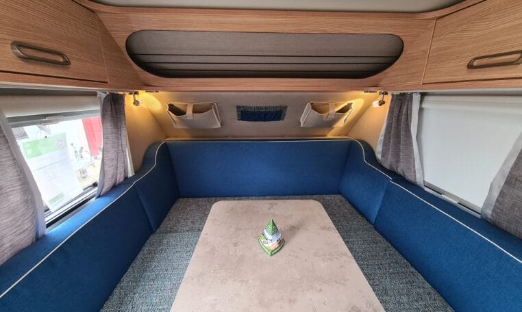 In de caravan vind u een rondzit die gemakkelijk kan worden omgebouwd naar een 2 persoons lengtebed.