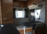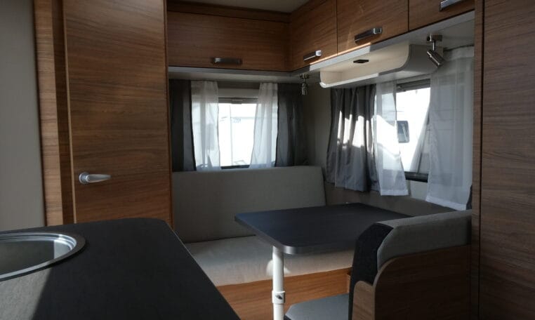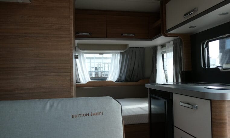 De 390 QD is compact van buiten, maar verrassend ruim van binnen. Voorin vind je een ruim tweepersoons bed met opbergruimte eronder. In het midden bevindt zich de keuken, compleet met 3-pits gasfornuis, spoelbak en koelkast. Achterin is er een zithoek die in een handomdraai om te bouwen is tot extra slaapplaats.