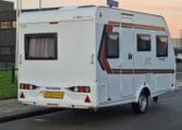 Ondanks zijn formaat heeft de caravan wel een royaal dwarsbed en ruime treinzit.
