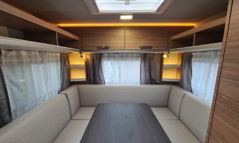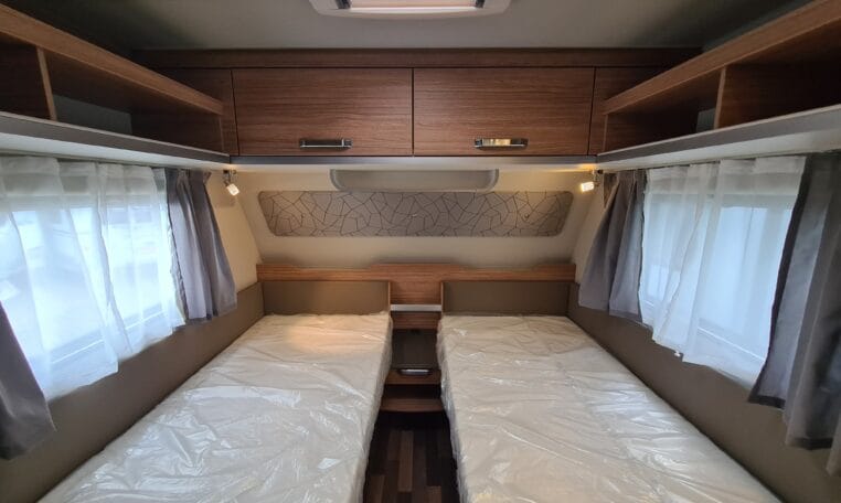 Deze ruime caravan met rondzit en 2 enkele bedden is uitermate geschikt voor een gezin, of als je met zijn tweeën ruim wilt kamperen.
